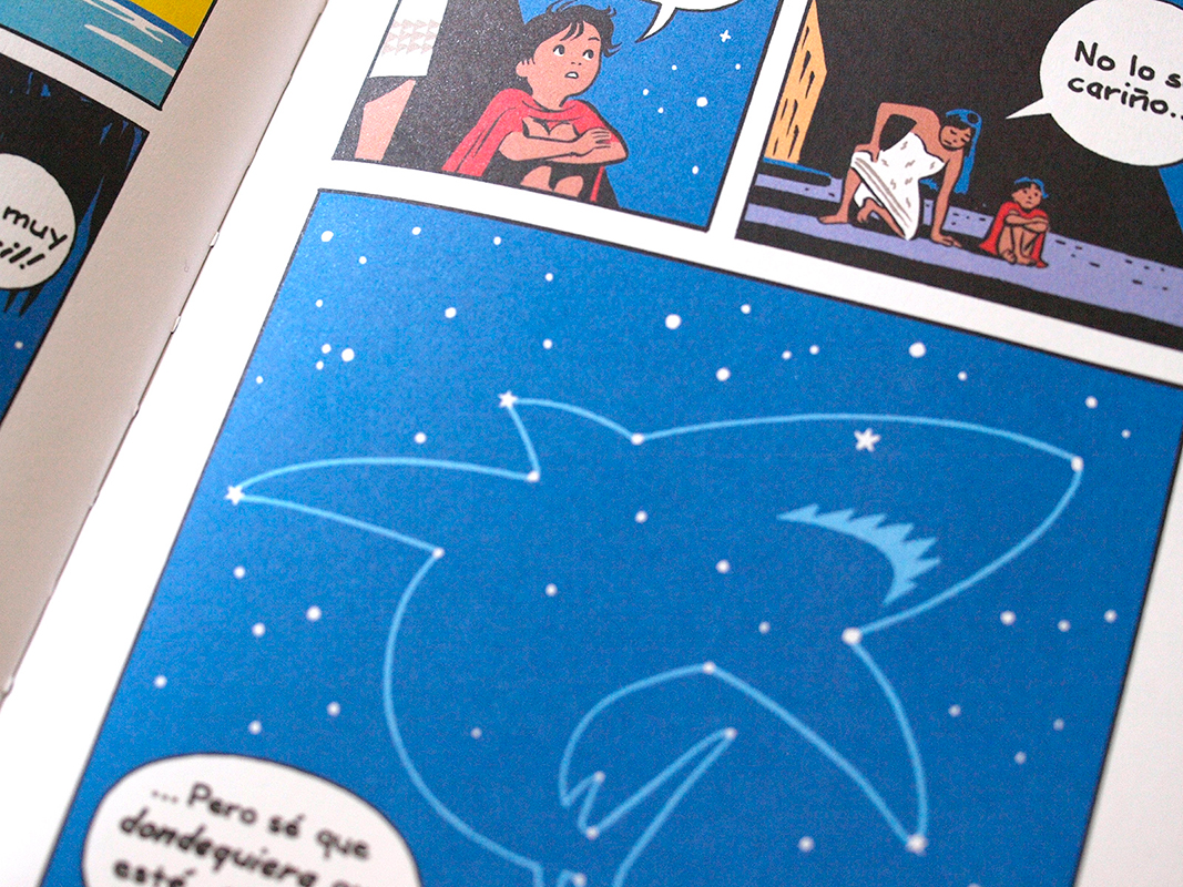 Diseñado y producido con todo el amor del mundo, este libro inaugura una colección que hemos querido encabezar con el epígrafe “Los niños también pueden leer tebeos” y se acompaña de unos breves consejos para guíar a los más pequeños por las páginas de un cómic.
