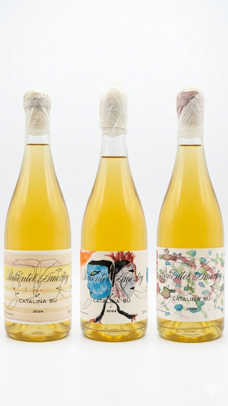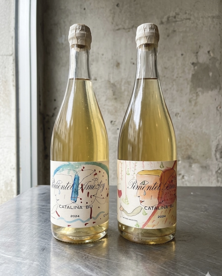 Elaborado y embotellado por Gabriel Ameztoy y Fulgencio Pimentel por el método ancestral. Uvas blancas de variedad viura (73%) y malvasía (27%), recolectadas en dos viñas situadas en el término municipal de Zarratón, a escasos 200 metros de la bodega.
