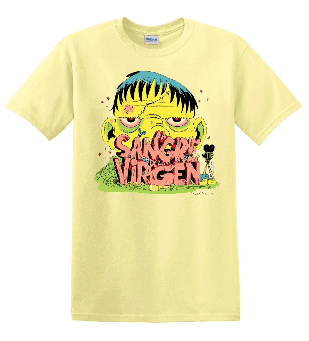 A finales de 2024 Sammy Harkham nos sorprendió desde Los Ángeles con esta polera-remera-playera-franela-chema-polo-camiseta de la marca clásica Gildan, señalada con el título de su edición favorita de entre todas las que tuvo su magnum opus Bloof Of The Virgin. Se tiró una edición súperlimitada de la prenda, fabricada en algodón amarillo de alto gramaje y serigrafiada en cinco tintas, que se agotó en cuatro días en EEUU. Nosotros las hemos aireado únicamente en GRAF y ComicBCN. Solo ahora, año y medio después, traemos aquí las pocas que nos quedan, por hacer labor social.